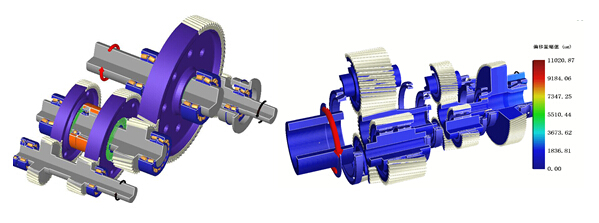 采用傳動(dòng)業(yè)界享有盛譽(yù)的Romax傳動(dòng)設(shè)計(jì)軟件及ANSYS有限元分析軟件對(duì)齒輪傳動(dòng)系統(tǒng)進(jìn)行設(shè)計(jì)和分析。研發(fā)團(tuán)隊(duì)在齒輪修形、傳動(dòng)系統(tǒng)NVH降噪設(shè)計(jì),潤(rùn)滑、密封等領(lǐng)域具備雄厚的理論分析能力和豐富的實(shí)踐經(jīng)驗(yàn)。