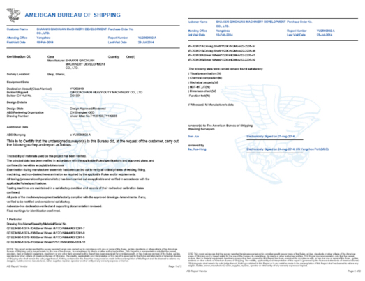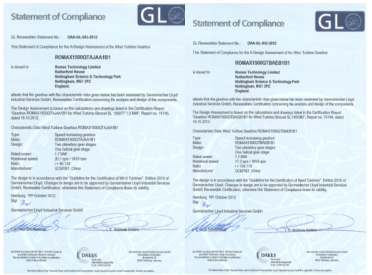 該系列增速箱運(yùn)用英國(guó)先進(jìn)的齒輪傳動(dòng)設(shè)計(jì)軟件Romax和有限元分析軟件ANSYS設(shè)計(jì)分析,效率達(dá)97.5%以上,通過了德國(guó)勞氏船級(jí)社(GL)產(chǎn)品設(shè)計(jì)認(rèn)證和產(chǎn)品型式試驗(yàn)A級(jí)認(rèn)證。