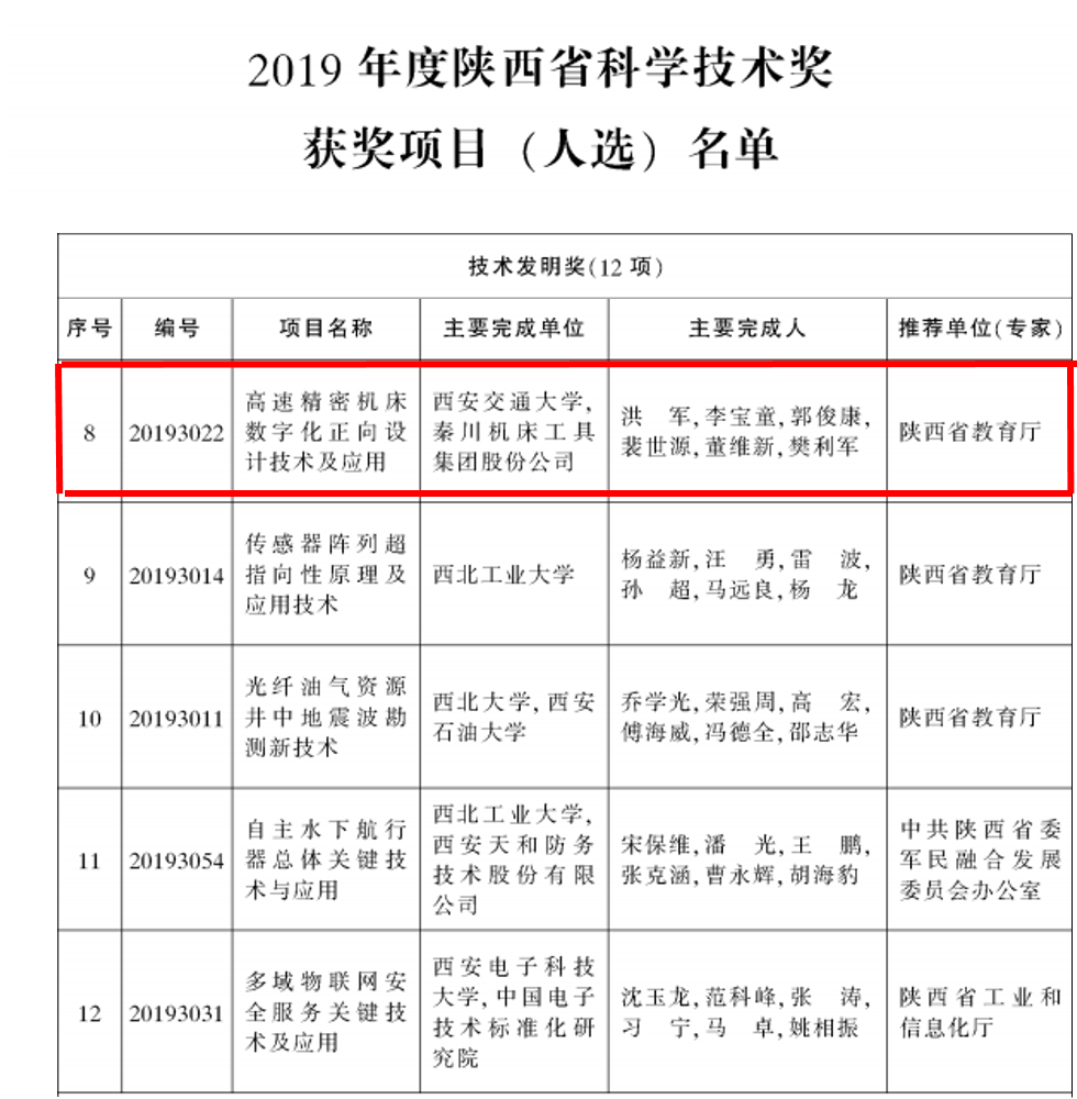 秦川集團(tuán)本部參與完成的“高速精密機(jī)床數(shù)字化正向設(shè)計(jì)技術(shù)及應(yīng)用”項(xiàng)目獲技術(shù)發(fā)明獎(jiǎng)一等獎(jiǎng)。秦川集團(tuán)寶雞機(jī)床“CK7516GS高速數(shù)控車床及CH7516GS車削中心”項(xiàng)目獲陜西省科學(xué)技術(shù)進(jìn)步獎(jiǎng)三等獎(jiǎng)。