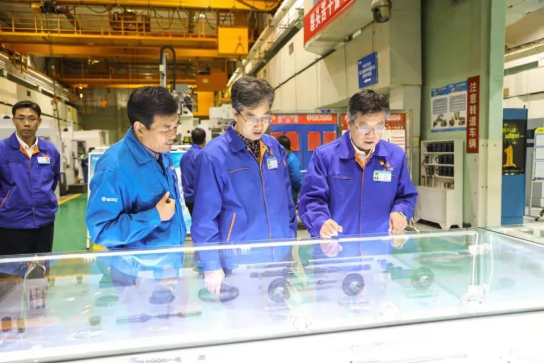 法士特領導干部先后參觀了秦川機床本部機器人數(shù)字化車間、總裝一車間和總裝二車間。